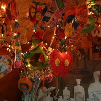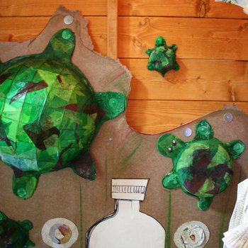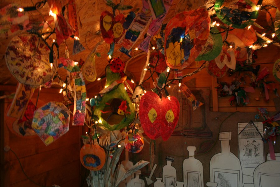 Author Roald Dahl wrote his marvellous children's stories in a writing hut, specially built for him in his garden at Great Missenden, Buckinghamshire. Inspired by this eccentric workspace, schools have worked alongside professional artists Anna Roebuck and Jane Stockley to create The Big Friendly Exhibition!Wonderful motivating exhibition, lots of fun, colours and imagination, really great.