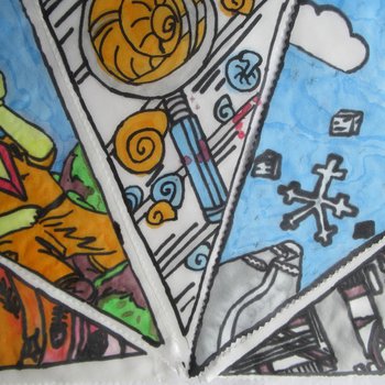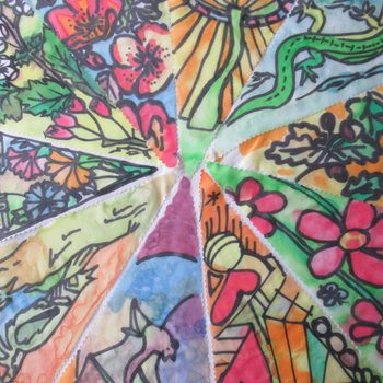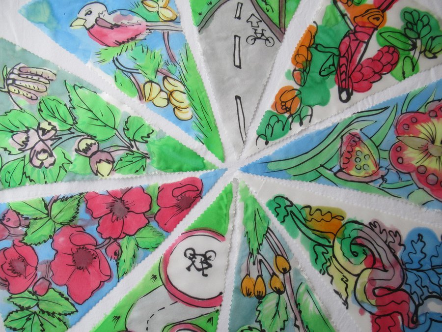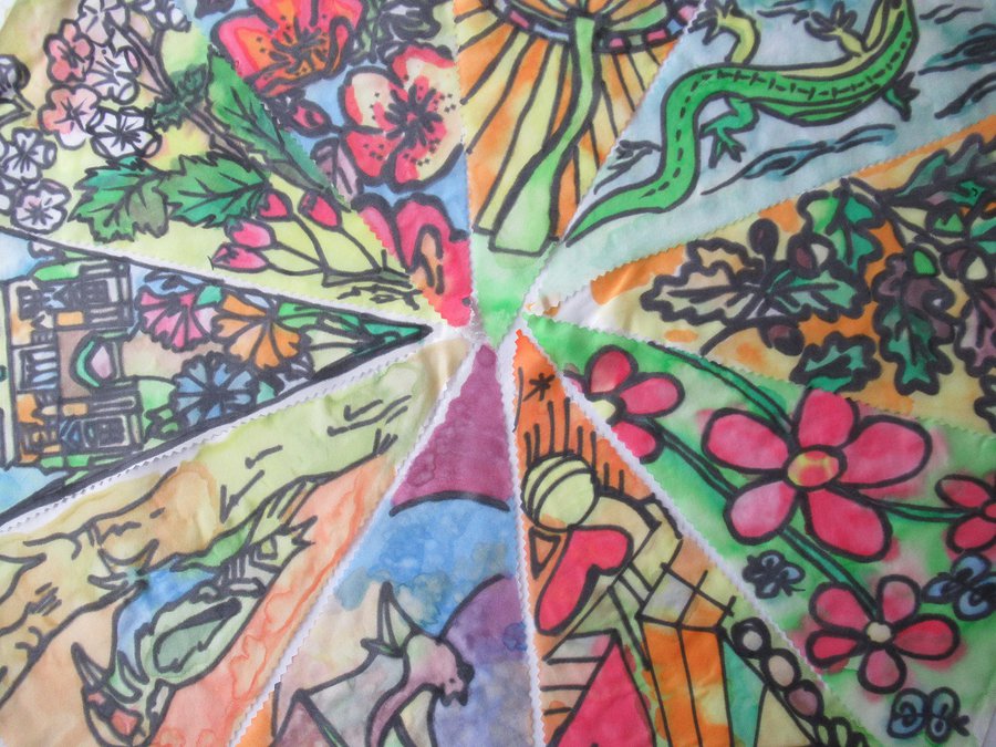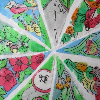 Groups across the Miner2Major area joined in with The Big Draw 2020: A Climate of Change by working with Jess to collectively create metres of silk painted festival bunting. Every flag we received is a hand painted artwork from the community exploring the 8 themes of the Miner2Major scheme: