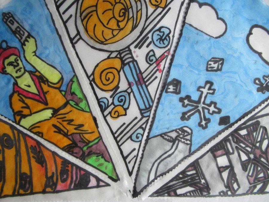 This exhibition and the bunting that will fly joyfully at festivals for many years to come is in memory of Jess, her kindness, her friendship and her talent.