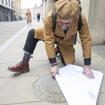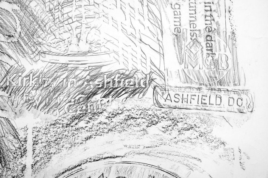 Surfaces of the Shire artworks are a fascinating and unique tonal picture of the surfaces and textures found on Nottinghamshire streets. They reflect architectural features, street furniture, signs, memorials and tell us stories of the past and present.