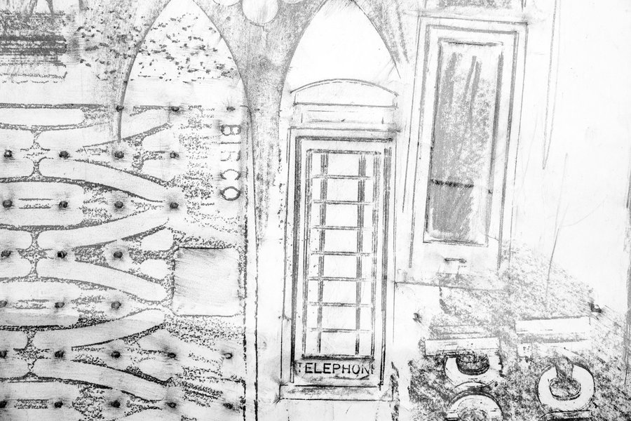 Some might be familiar to you, others you might like to research. All are reduced to tones of graphite on white paper – and are a record of the heritage that remains in plain sight today.