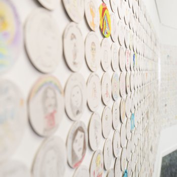 We have received 2500 FACES, PLACES self-portraits on circular cardboard tiles from artists of all ages at FACES, PLACES workshops in Inspire Libraries, in Bassetlaw schools and in homes across the county.