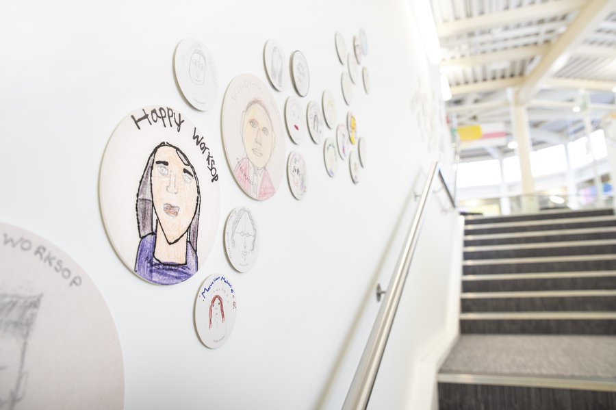The FACES, PLACES Exhibition opened on Friday 1 October at Worksop Library Gallery and thousands of self portraits, from schools in Bassetlaw, provided the backdrop to FACES, PLACES Big Draw activity led by Emma at the Worksop Library Fun Palace