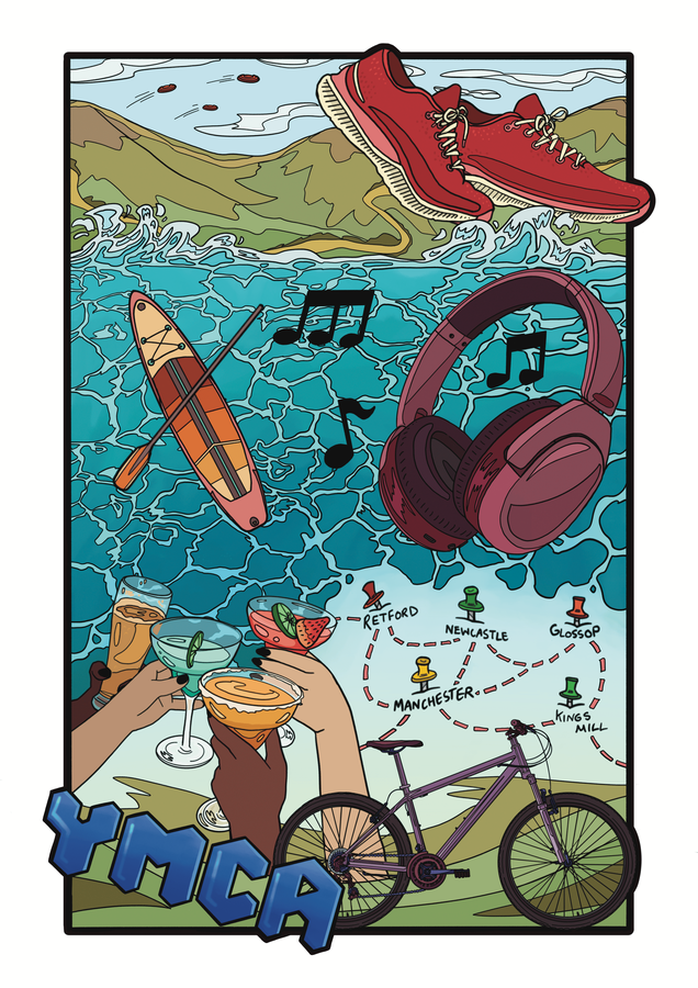 Tasha spent her time scribbling, doodling and adding colour to everything she heard, working with the young people to draw visuals that represented their feelings and favourite memories. These vibrant, dynamic images are an amalgamation of memories, moments and feelings from the YMCA Mansfield.