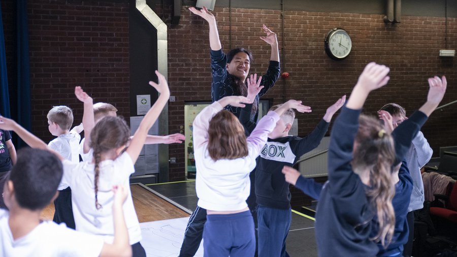 For The Big Draw 2022: Come Back to Colour, Inspire partnered with ABL Health and Arc Partnership to deliver a creative approach that supported the health and wellbeing of children, young people and families across Nottinghamshire. The 2022 theme invited us to rediscover ourselves, our health, bodies and vitality through colour and community. Inspire worked with internationally renowned Japanese dance artist Takeshi Matsumoto, who designed an energetic and inclusive workshop where 384 pupils from Mansfield Primary Schools and local family audiences created community artwork together. Through movement, dance, and mark-making, they drew outlines of the human form which evolved from figurative, to abstract, to imaginative. Our groups’ colourful marks and line drawings contributed to a collaborative artwork that went on to tour Inspire libraries between 2022 and 2023. Every Inspire Library in Nottinghamshire joined in with the collaboration and gave away a 'How To' activity sheet so even more families could take part in their library or at home.
