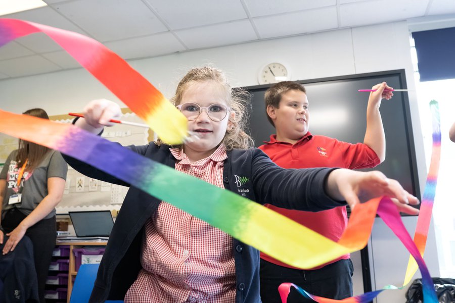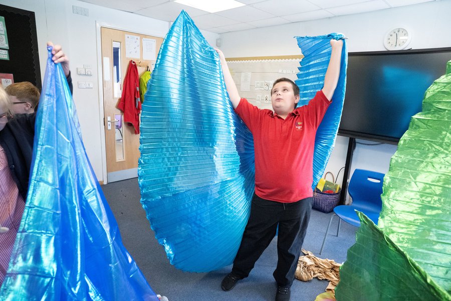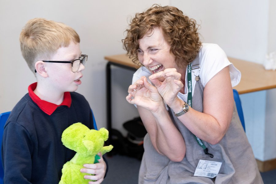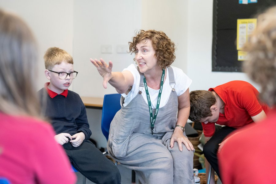 Storyteller Nicky Rafferty worked with the pupils of Bracken Hill School, using a basket of props and sharing poems, fables, fairy tales, myths and legends, incorporating rhythm, rhyme, repetition, actions and sound effects to offer a huge bank of shared references to inspire the creation of stories as a group.