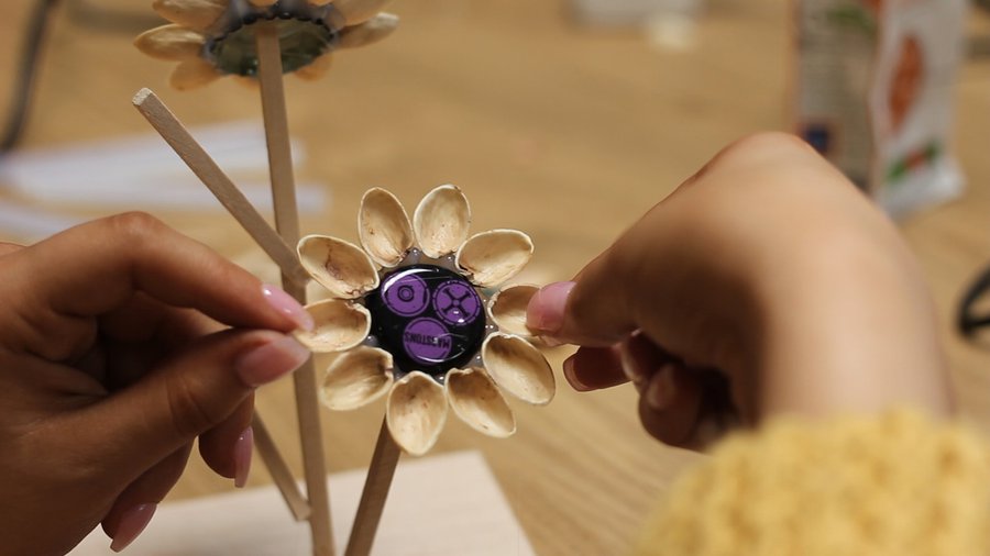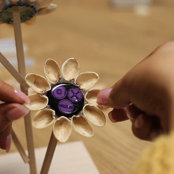 In collaboration with local sculptor Phil Neal, the workshops saw the young people create sculptures of a particular flora, local to the Sherwood Forest area, from various recycled materials. Carefully constructed from corks, bottle tops and wood, these sculptures included artistic interpretations of an ox-eye daisy, a dandelion, foxgloves, a porcini mushroom and a tansy.