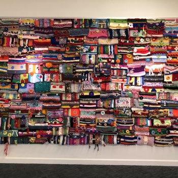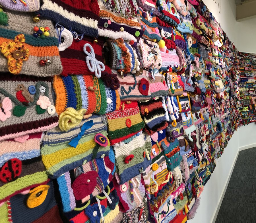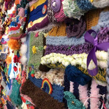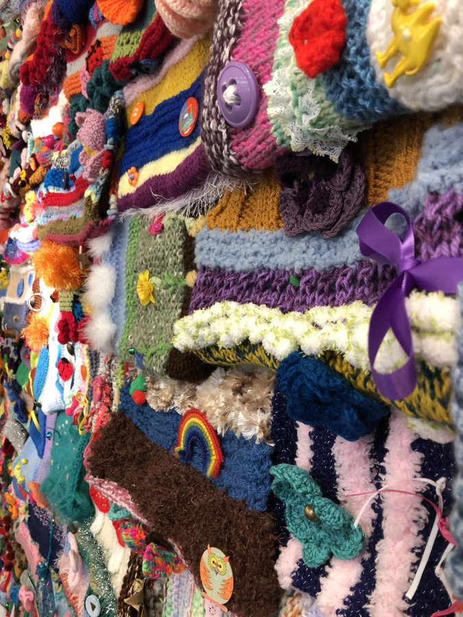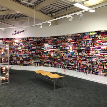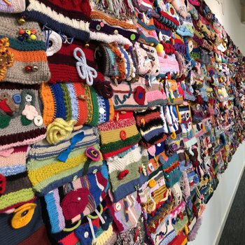 In this exhibition Nottinghamshire crafters have embellished Worksop Library Gallery walls with rows and rows of colourful and textured Twiddlers, and they are all for charity.
