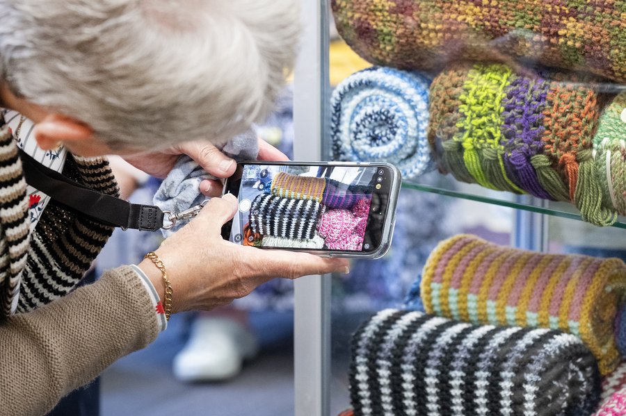 The diverse array of knitted scarves, each featuring it's own unique pattern and vibrancy, showcases not only skill but an imaginative dialogue between tradition and contemporary artistry.